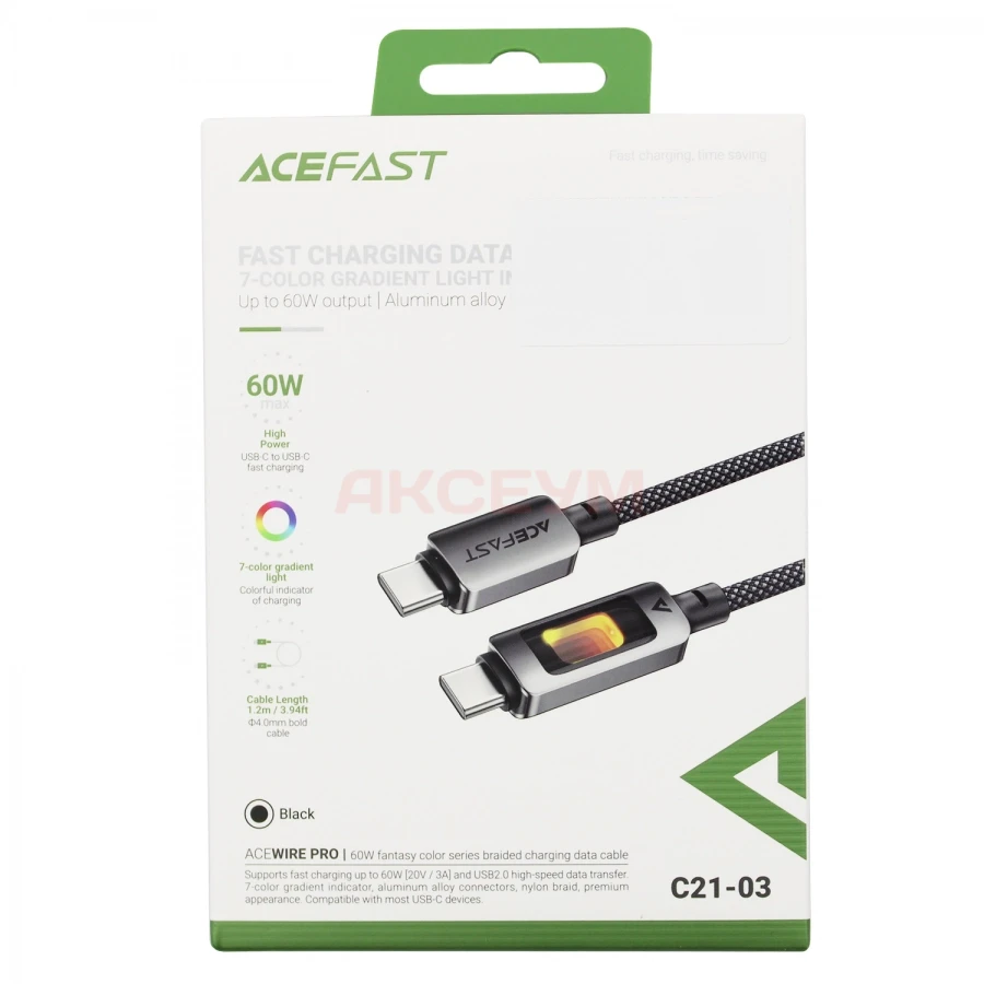 Кабель Type-C - Type-C Acefast C21-03 (3A/60W/PD/оплетка нейлон/1.2 м) черный
