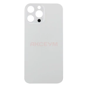 Задняя крышка для iPhone 13 Pro Max (стекло/узкий вырез под камеру/логотип) белая - Премиум